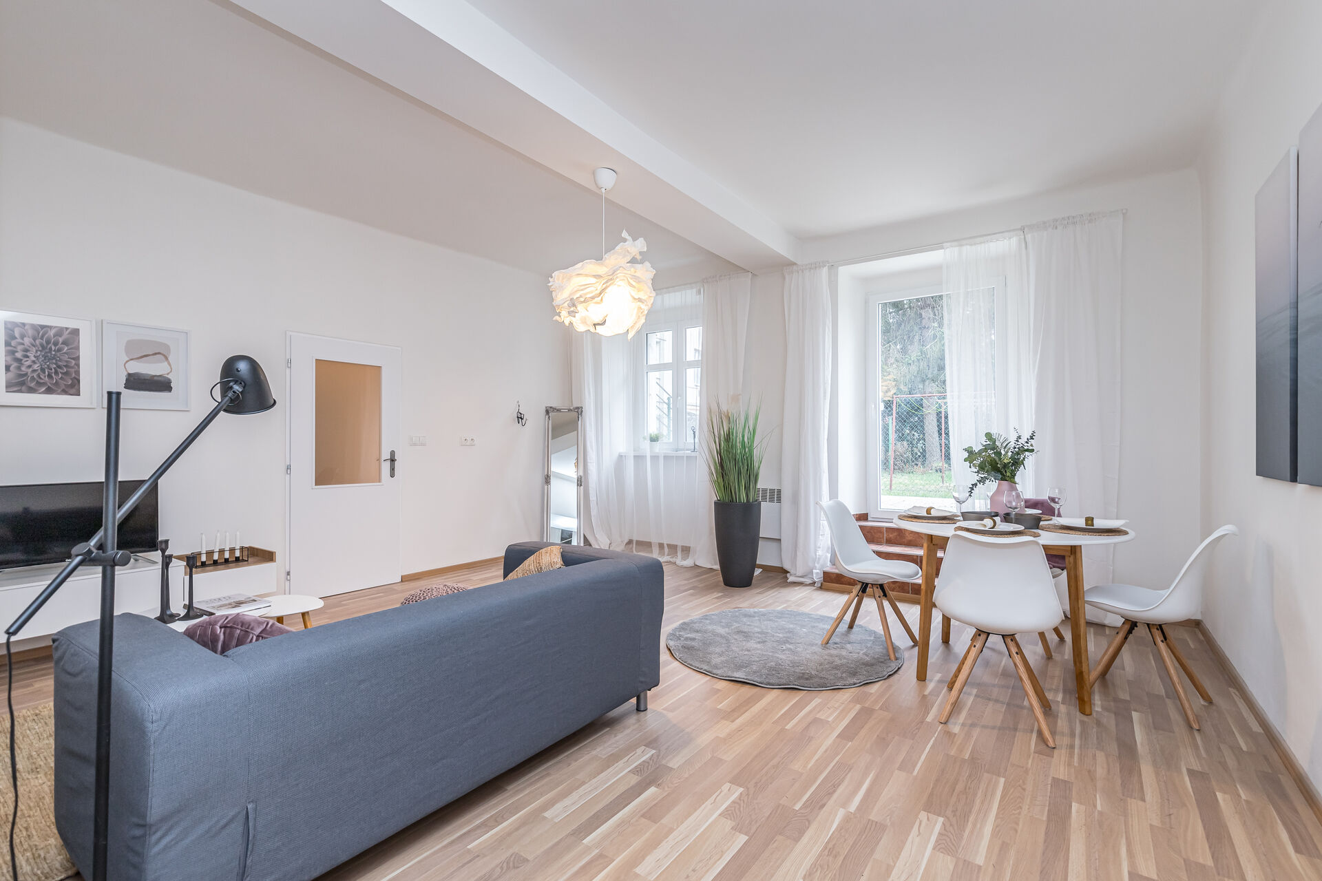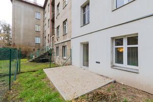 Dům se společnou zahradou pro rezidenty je v dobrém udržovaném stavu po částečných opravách.