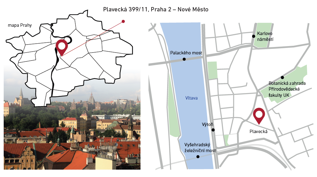 We offer for sale a 100% stake in an apartment building at Plavecká 399/11, Prague 2 - Nové Město