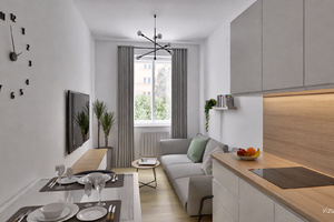 The new units A1.2, A02.101, A02.102 and A01.103 were built as part of a larger reconstruction of the building. They offer completely new water, heating and electricity distribution and their own heating source - gas or electric boiler depending on the type of unit. The standard includes new interior doors, vinyl floors in wood decor, modern tiles, a kitchen with appliances and a fully equipped bathroom.