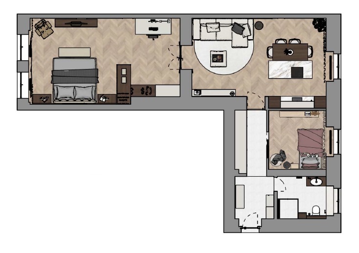 2 bedrooms + kitchen