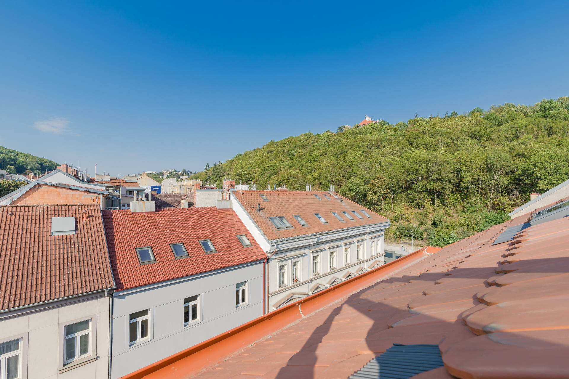 The attic new construction project, scheduled for completion and unit handover in December 2024, involves the construction of three entirely new residential units with layouts of 2+kk. Two of these units will also feature a beautiful terrace with a view of Vyšehrad.