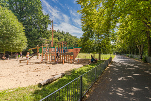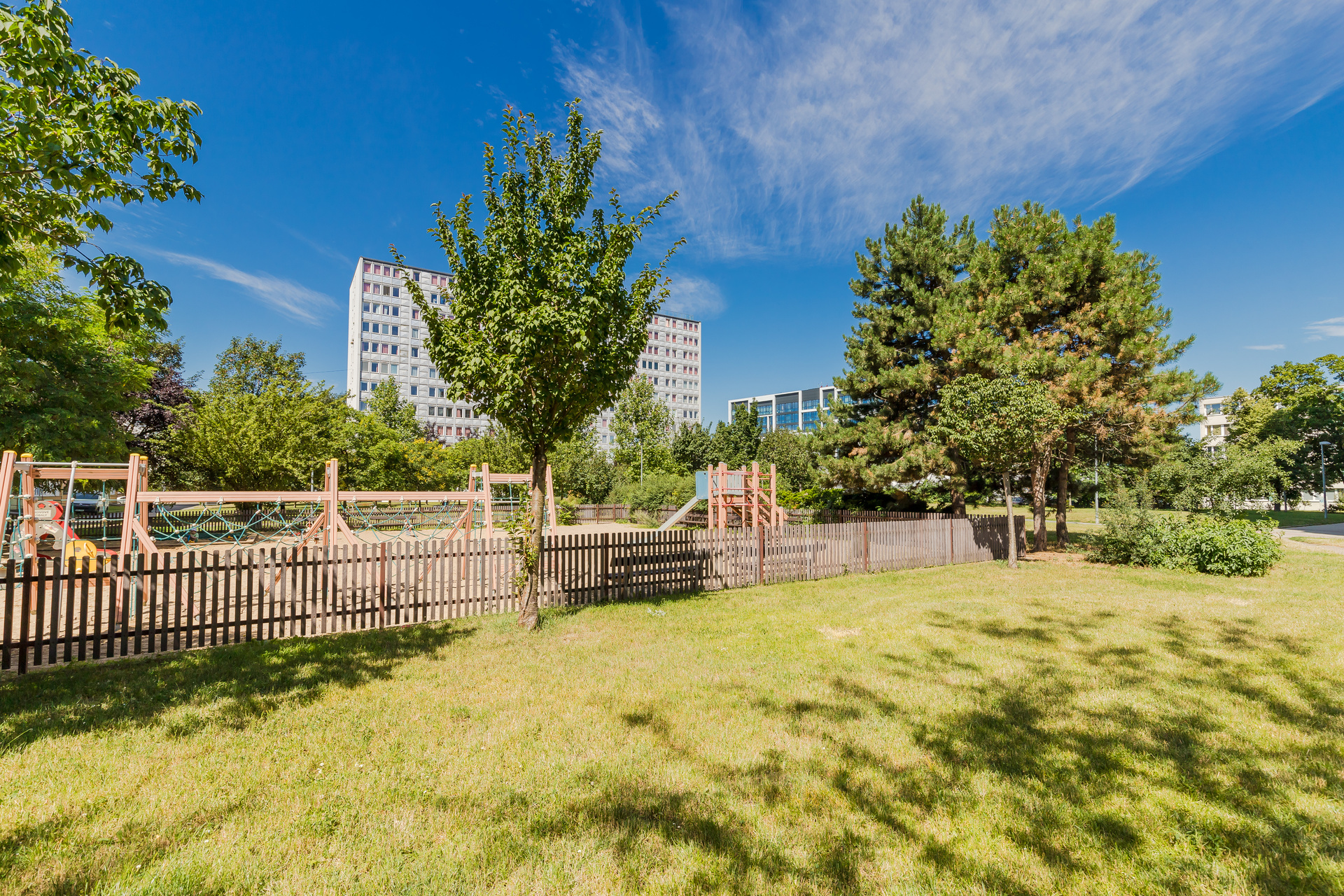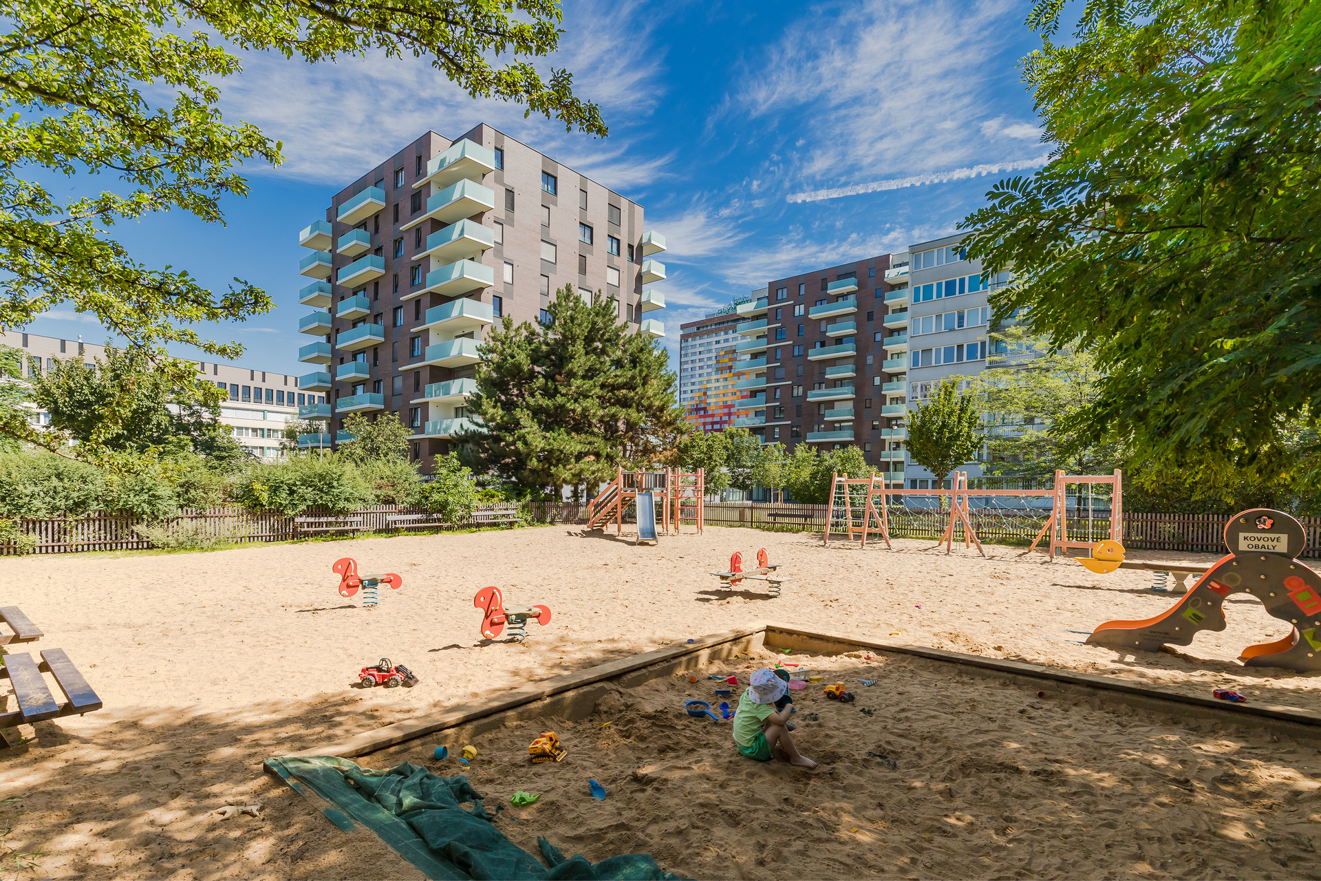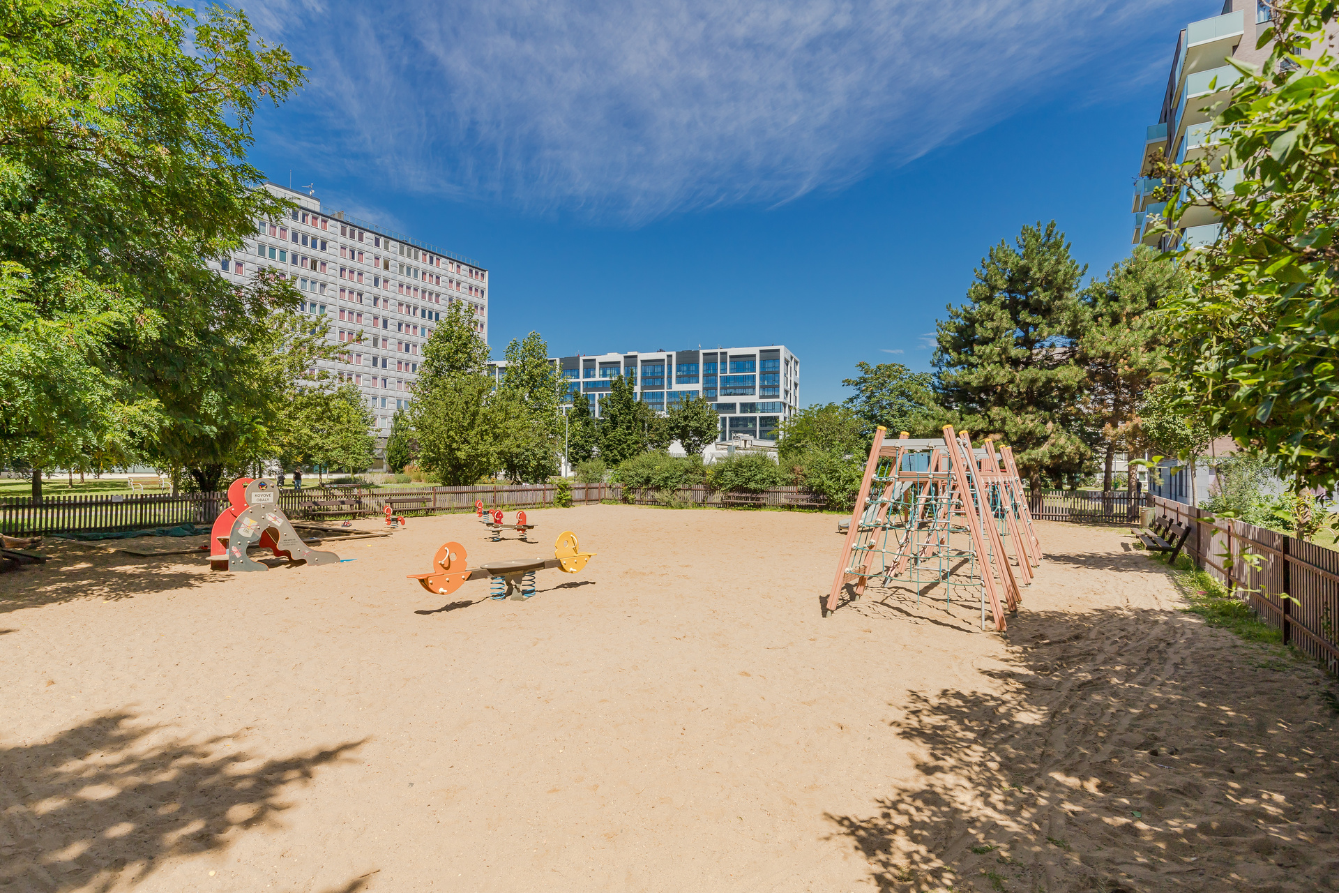 - Thomayerovy Sady Playground: The park under the gasometer is the nearest park with a slide and several workout elements for active relaxation. The lower part of Thomayerovy Sady has a fenced children’s playground with a ship-themed playset.