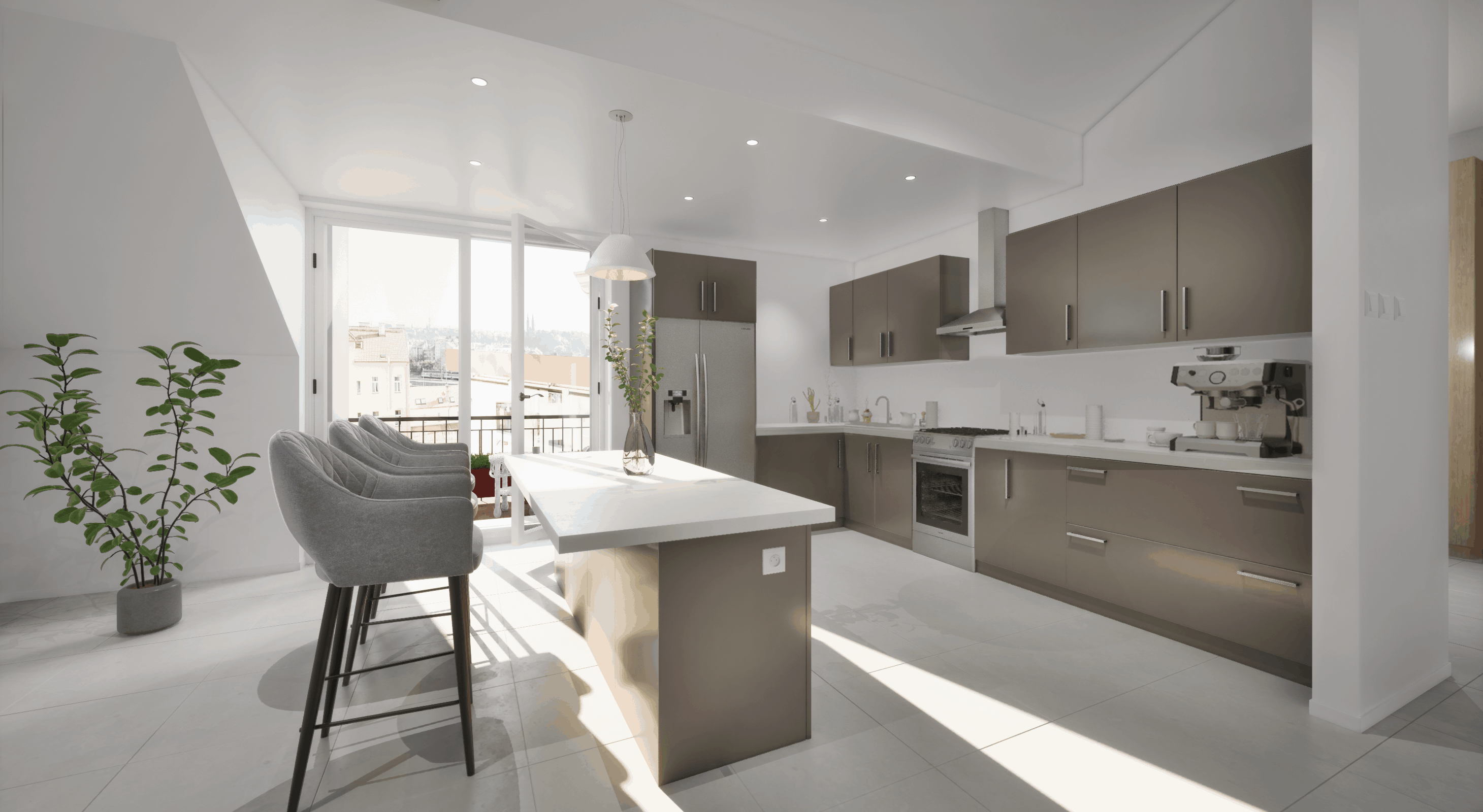 The standard of the new apartments is the so-called "White walls", where the new owner implements the details according to his own taste and wishes. These include final surfaces such as floors, tiles, fixtures, kitchen units, and interior doors.