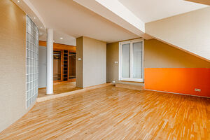 Srdcem bytu je prostorný obývák s kychyňským koutem o výměře 123 m², který se jistě stane místem k setkávání s přáteli a rodinou. V bytě jsou dvě koupelny i další samostatné WC, dva skladové prostory a prostorná walk-in šatna. Další dvě samostatné místnosti lze využít jako ložnici a pracovnu, v bytě je příprava pro zabezpeční a kamerový systém. Kromě vzdušného obýváku jistě oceníte velkou terasu s výhledem vhodnou jako místo pro grilování nebo jako venkovní kuchyně. Byt má vysoké stropy, díky kterým se v něm budete cítit volně. Nachází se v historickém domě z roku 1914 od architekta Flégla, což jenom podtrhuje jeho genius loci. Společné prostory jsou také po kompletní rekonstrukci.