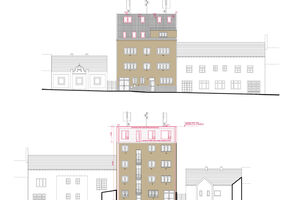 Obytný čtyřpodlažní dům v řadové zástavbě se skládá ze dvou budov propojených společnou zahradou. Ve stávajícím 4. NP doplní dva současné byty nová bytová jednotka 2+kk a v nově vzniklém 5. NP bytová jednotka 3+kk. Počítá se s prodejem stávajících samostatně vymezených nebytových jednotek a pravomocným stavebním povolením na výstavbu dvou uvedených bytových jednotek. Souhlas všech vlastníků ostatních jednotek v domě je zajištěn Smlouvou o výstavbě. Obě budovy domu jsou podsklepené a odděluje je společná zahrada se zelení, která je k dispozici všem vlastníkům obytného komplexu. V okolí domu je bezproblémové parkovaní.